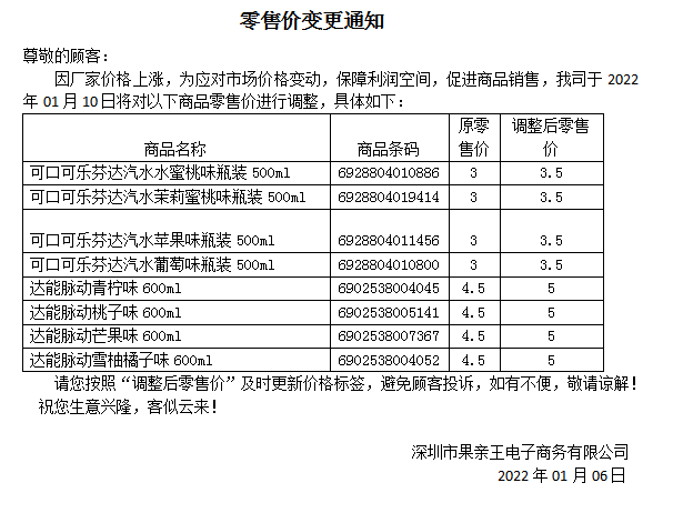 门店调价通知2022.1.06